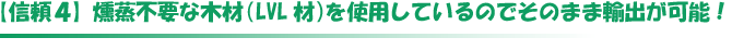 弊社では梱包用規格箱の部材に国内外の輸送を問わず、 LVL材を使用しています。 LVL材を使用することによって、 海外への緊急出荷も対応を可能にしています。 >>燻蒸不要な規格箱はこちら |